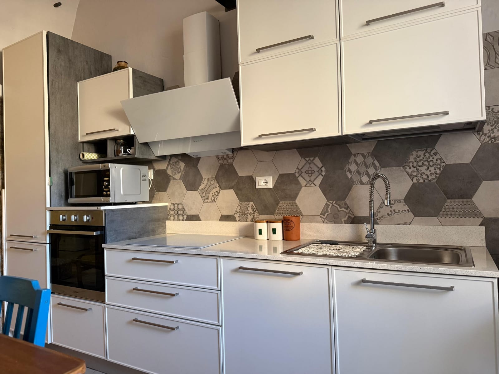 La cucina moderna e funzionale è perfetta per chi ama cucinare, mentre la zona soggiorno, dotata di divano letto, due poltrone e TV, crea un’atmosfera accogliente e rilassante. I dettagli eleganti e raffinati rispecchiano un design semplice ma di classe. Non manca un pratico ripostiglio sottoscala e un bagno con finestra che aggiunge luminosità all’ambiente.