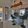 Al piano primo si trova una spaziosa cucina su misura; anche questa con piani in quarzo nero stellato, una camera da letto principale con bagno privato anch’esso con doccia ed un altro studio.
