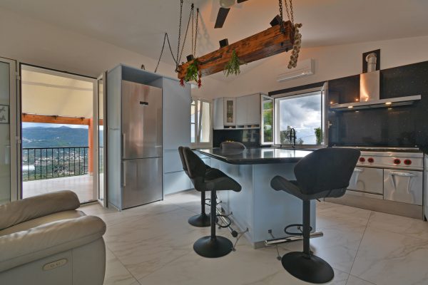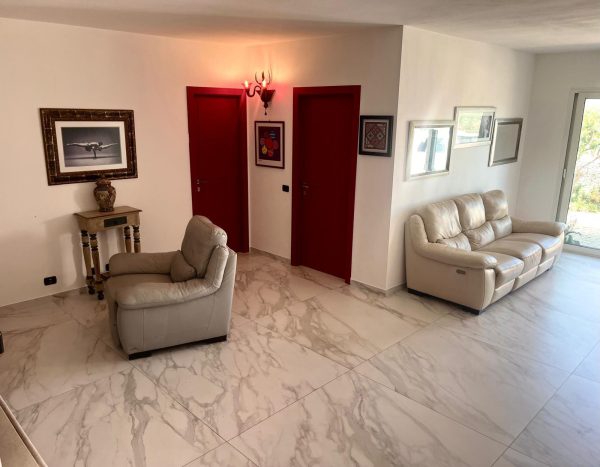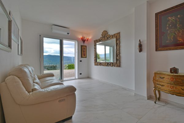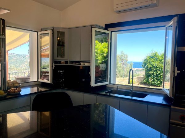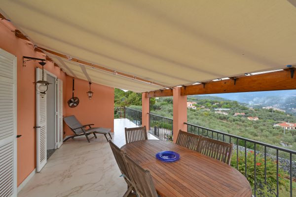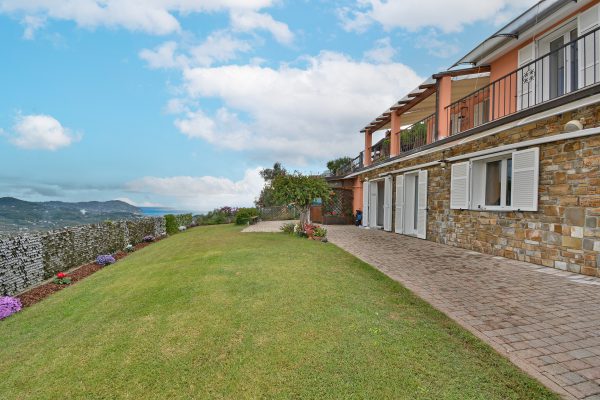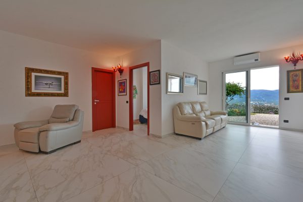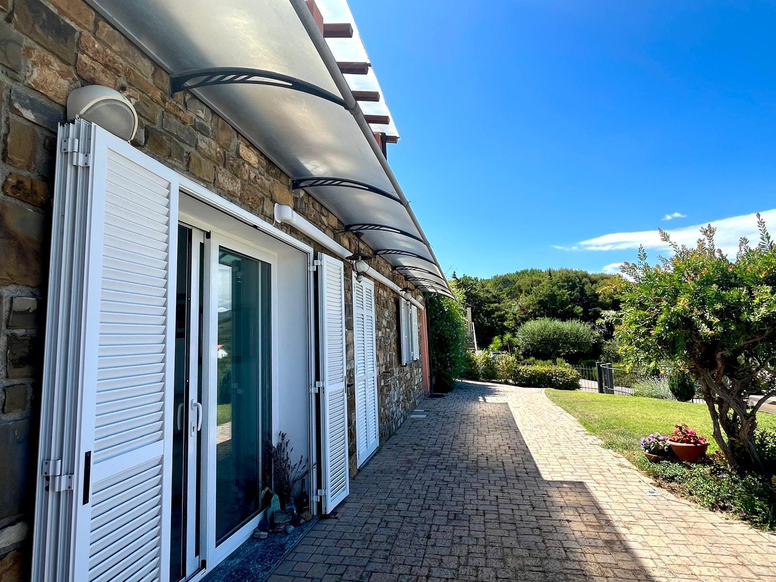 Immerso nelle verdi colline con uliveti, questa proprietà offre una bella vista panoramica e mare ed un giardino privato di 900 mq, perfetto per godere della tranquillità e della bellezza della natura circostante.