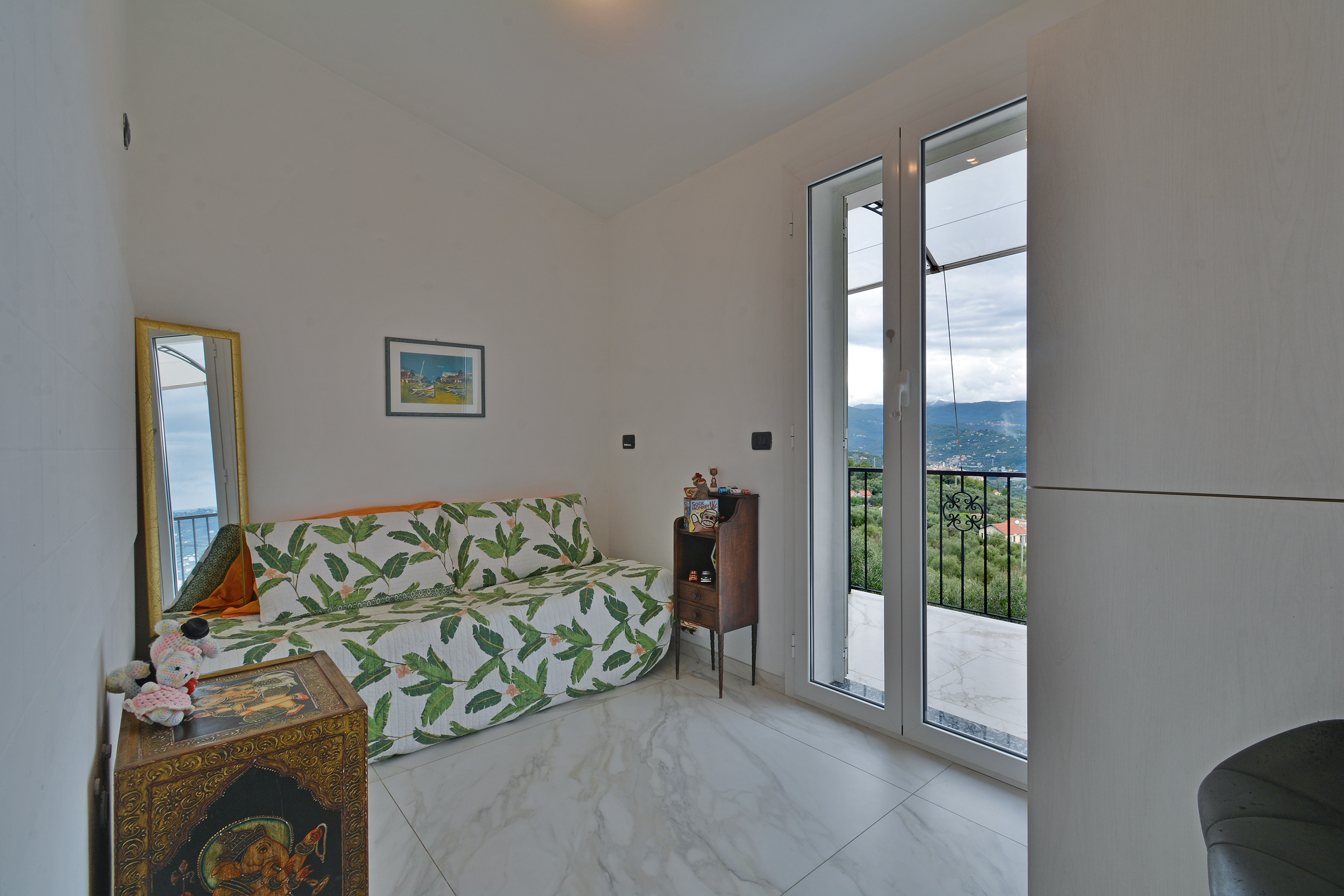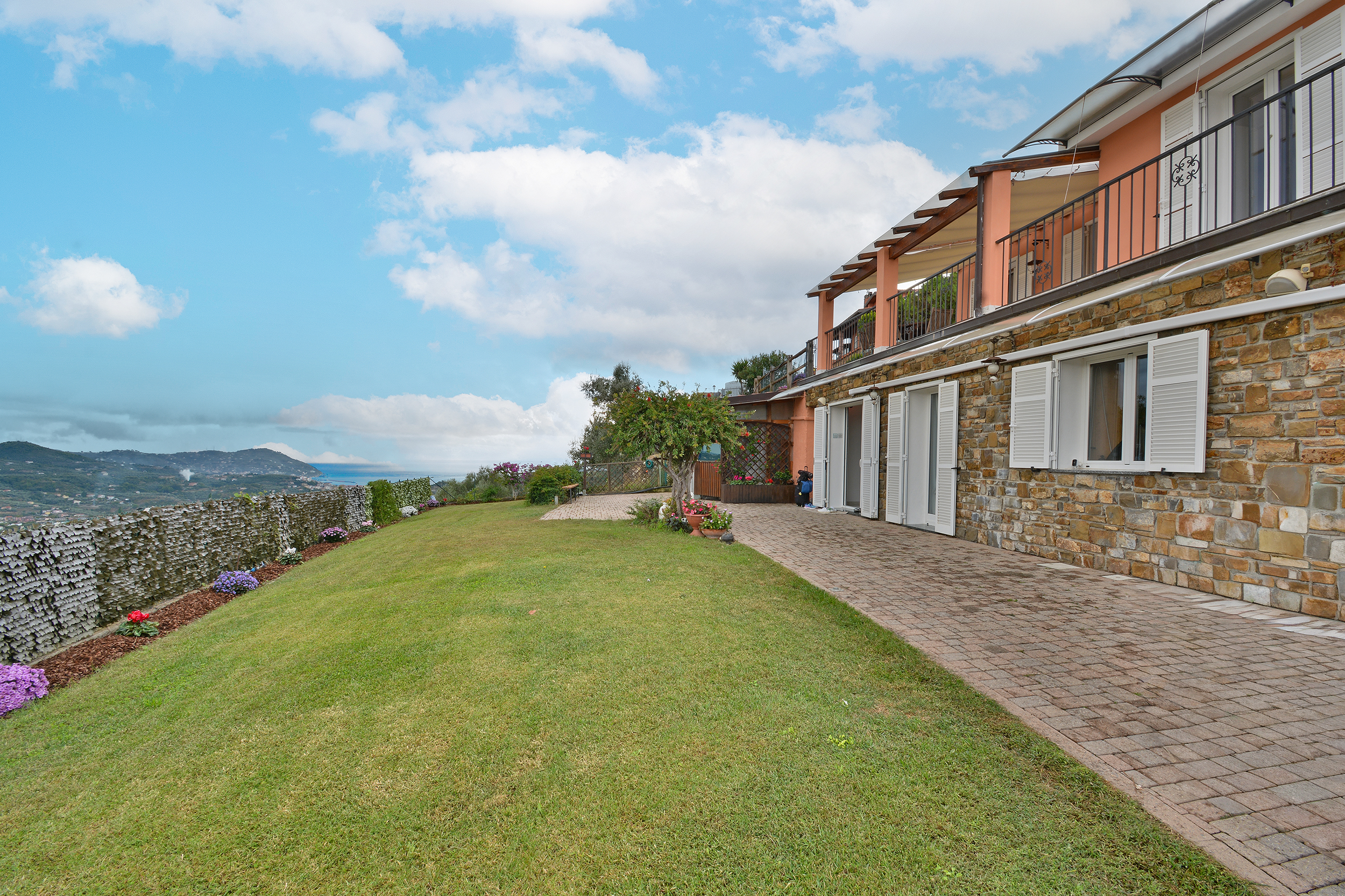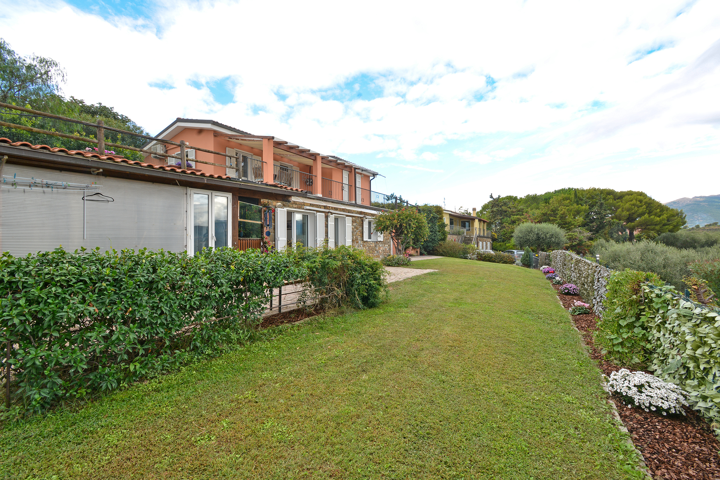 Immerso nelle verdi colline con uliveti, questa proprietà offre una bella vista panoramica e mare ed un giardino privato di 900 mq, perfetto per godere della tranquillità e della bellezza della natura circostante.