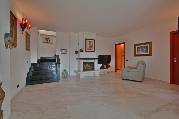 Al piano terra: grande salone funzionale con camino con basamento in marmo, una camera/studio, una camera da letto, un disimpegno con armadio a muro, un bagno con doccia, una lavanderia ed un sottoscala.