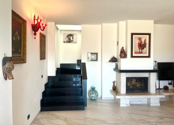 portoncino blindato, infissi nuovi con vetro argon, di 14 pannelli fotovoltaici, di un camino termoventilato a legna, di climatizzatori a pompa di calore di un impianto di irrigazione automatico, serbatoio interrato cap. 2000 lt. per uso irrigazione e cancello d’ ingresso automatico con telecomando. Basse spese manutentive.